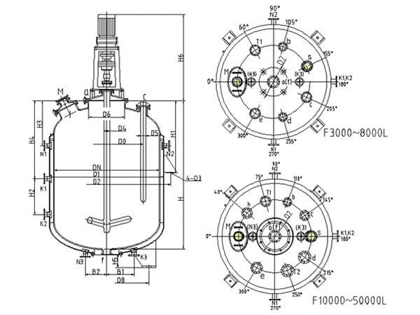 Reaktor berlapis kaca berkapasitas 10.000 L dengan peredam kecepatan vertikal